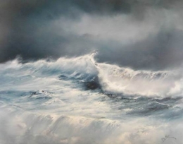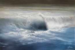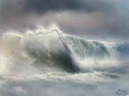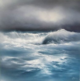 La vision de Jean-Jacques Gendron est réaliste. Et pourtant ces quasi-photographies vous procurent une détente poétique extraordinaire. Ne serait-ce pas en raison du mouvement, un mouvement suggéré qui vous lie à la vague et vous fait immédiatement imaginer la suite du mouvement, l’écrasement de la vague sur le sol, l’éparpillement des gouttelettes, la fusion entre l’écume et le ciel tapi derrière la bascule de l’océan. Et vous entendez dans votre conscience sur-aiguisée le bruit de l’effondrement de la vague sur la côte.
